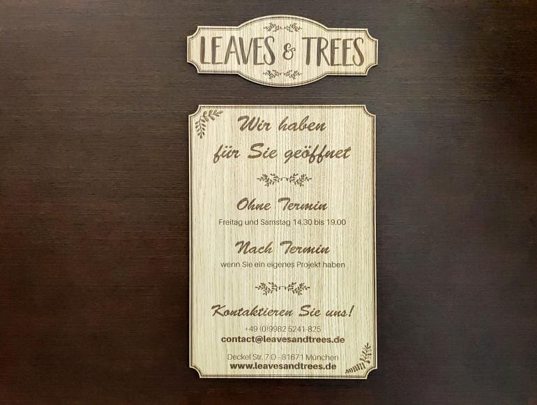 Laser Wood je na voljo v 4 različnih vrstah lesa. Laser graviranje in rezanje, mehansko graviranje ali UV tiskanje, Laser Wood je vaša najboljša izbira za ustvarjanje notranjih oznak, kartic ali promocijskih izdelkov, oblikovanje dekoracije, daril ali modelov. Kombinirajte ga z drugimi materiali, kot so plastika ali aluminij, za sodoben in trendovski rezultat!