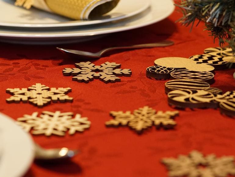Les je naraven organski material. Debelina, barva in videz se lahko razlikujejo od ene plošče do druge. Pustite, da se material prilagodi končnim pogojem uporabe, preden ga uporabite. Nanesite maskirni papir na ploščo materiala, da preprečite prah in hlape med CO2 laserskim rezanjem. Material pripnite ravno na heneycomb mizi s pomočjo sponk.